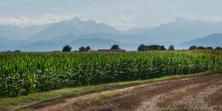 Der Busfahrer, der uns ins Gebirge zurückbringen soll, ordert extra für uns einen anderen, größeren Bus, damit die Räder und Anhänger überhaupt hineinpassen. Dann geht es im Gebirge von Piemont vom Maira- ins Sturatal über eine großartige Hochebene - ein landschaftlicher Hochgenuss!