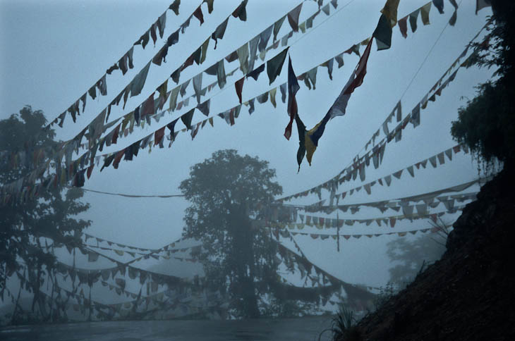 Auch unsere Anreise fällt aus dem Rahmen - wir fliegen zuerst nach Kalkutta am Ganges-Delta. Hier sind gerade sintflutartige Regenfälle niedergegangen und die meisten Straßen stehen unter Wasser. Im Bazar müssen wir durch riesige Wasserpfützen laufen, um uns für die Tour noch große Regenschirme zu kaufen. Bhutan ist sehr grün, aber das kommt durch viel Niederschlag!