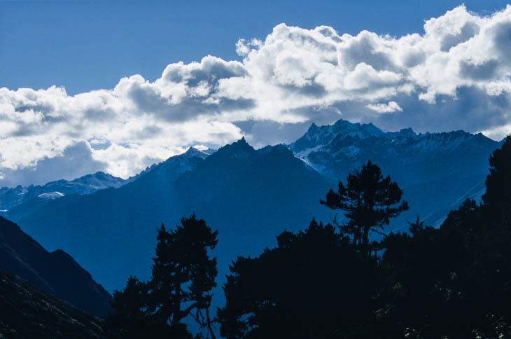 Unser Ziel ist der anspruchsvolle Snowman-Trek, der über mehrere 5000 m hohe Pässe führt. Aufgrund seiner Länge und Schwierigkeit wird er nur von etwa 10 Gruppen pro Jahr begangen. Hauptprobleme sind das Wetter mit plötzlichen Schneefällen und die Schwierigkeit, genügend Tragetiere zu bekommen. In der Vormonsunzeit sind die Yaks noch zu schwach bzw. werden auf den Feldern gebraucht und in der kurzen Nachmonsunzeit sind die hohen Pässe nur während weniger Wochen begehbar.