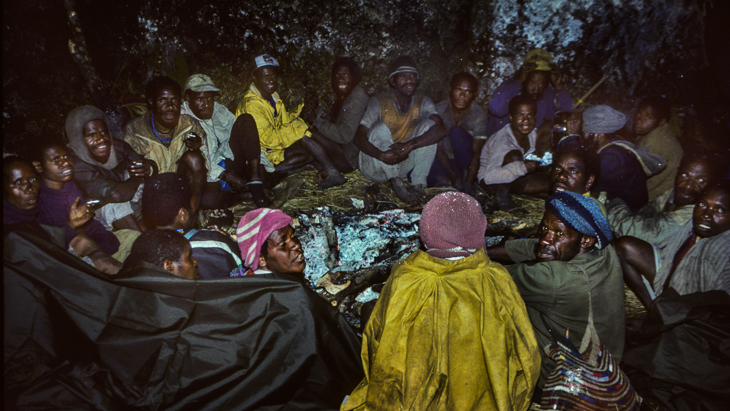 Unsere Übernachtungsplätze liegen sechs bis acht Stunden voneinander entfernt, meist in der Nähe eines höhlenartigen Überhangs, unter dem die Träger eng zusammengekauert um das wärmende Feuer liegen. Als Unterlage dient lediglich etwas trockenes Gras, eine Decke und warme Kleidung haben nicht alle, so daß das Feuer die ganze Nacht brennen muß. In der Glut werden auch die Süßkartoffeln gebraten, das Hauptnahrungsmittel der Danis. Unterwegs wird bei jeder größeren Rast trotz Nässe und feuchtem Holz immer gleich ein Feuer angefacht. Die Danis sind der Natur gut angepaßt und leben noch weitgehend im Einklang mit ihr.