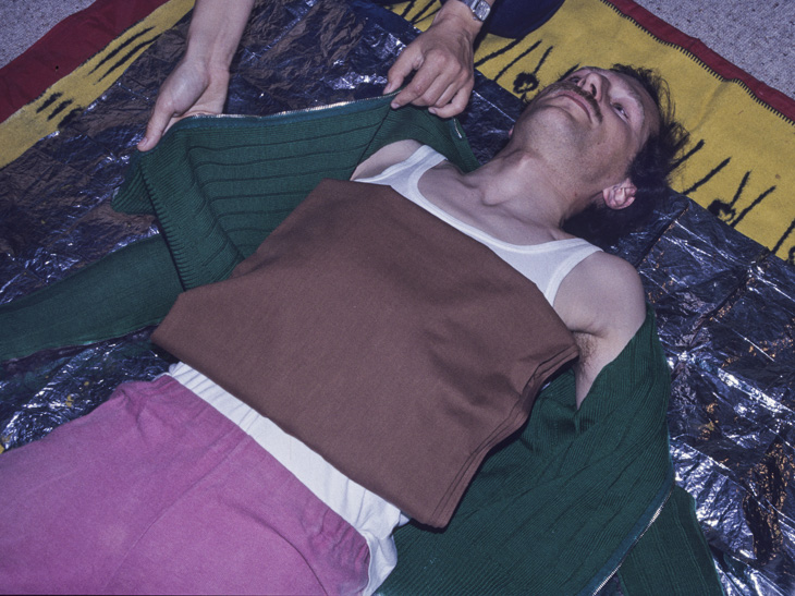 Erwärmung durch Hibler-WärmepackungAm besten eignet sich die sogenannte Hibler-Wärmepackung. Dabei werden große chemische Wärmebeutel oder notfalls auch mehrfach zusammengefaltete, feuchtheiße Tücher auf die Unterwäsche von Brust und Bauch gelegt, nicht jedoch auf die nackte Haut. Darüber folgen Kleidung, Alufolie (quer) nur um den Rumpf sowie zwei Decken (einmal längs und einmal quer) und Biwaksack um den ganzen Körper mit einem guten Abschluss am Hals. Eine warme Mütze schützt den Kopf, da über ihn wegen der schlechten Isolation und der geringen Gefäßregulation bis zu 50% der Körperwärme verloren gehen können. Bei dieser Methode erfolgt die Wärmezufuhr nur über den Rumpf mit den lebenswichtigen inneren Organen, während der sonstige Körper mit seinem kalten
