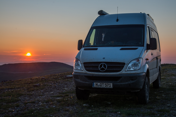en unseres eigenen Wagens gelohnt. Im Wohnmobil war bereits ein Großteil unsere Ausrüstung verstaut, sodass wir meist mit Handgepäck reisen konnten. Auch hatten wir auf diese Weise alles für einen Campingurlaub schon dabei und dazu jede Menge Extras inklusive Brotbackmischungen. Und wir konnten im Allrad-Sprinter ganz einsame und besondere Nachtplätze ansteuern, die mit Mietwagen nicht möglich und erlaubt wären. Mit unserer Solaranlage auf dem Dach waren wir vollkommen vom amerikanischen Stromnetz unabhängig und konnten so weitgehend autark reisen. Nur Einkaufen und Tanken war alle paar Tage notwendig.