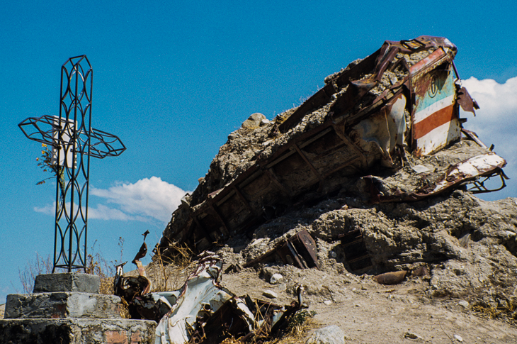 Zum Abschluss fahren wir vom Hauptort Huaraz mit dem Bus das Santa-Tal entlang nach Yungay. Dieser Ort wurde 1970 bei einem Erdbeben durch eine Stein- und Schlammlawine völlig zerstört, wobei 20 000 Menschen ums Leben kamen. Ein Stück weiter wurde ein neues Yungay aufgebaut, doch der Ort gefällt uns nicht besonders. Der einzige Überrest des alten Yungay ist eine Mauer der Kirche, sonst erinnern nur zahlreiche Kreuze daran, dass hier einmal Menschen gelebt haben. Etwas am Rand steht ein Hügel mit dem Friedhof, der nicht zerstört wurde. Die Stimmung ist bedrückend - schweigend laufen wir zwischen all den Kreuzen herum. Wir finden noch einen zerstörten Omnibus und zwei Palmen - das ist alles.