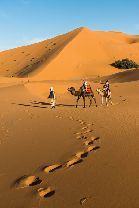 Besonders spannend – und nicht nur für die Kinder – ist ein echter Kamelritt in den Sanddünen vom Ergg Chebbi. Isabella sitzt ganz alleine auf dem größeren Kamel, weil der Kamelführer gedacht hat, dass ich als Papa mit ihr darauf reite. Ich fotografiere und filme aber lieber mit meinen Kameras von unten und komme so zu eindrucksvollen Aufnahmen!