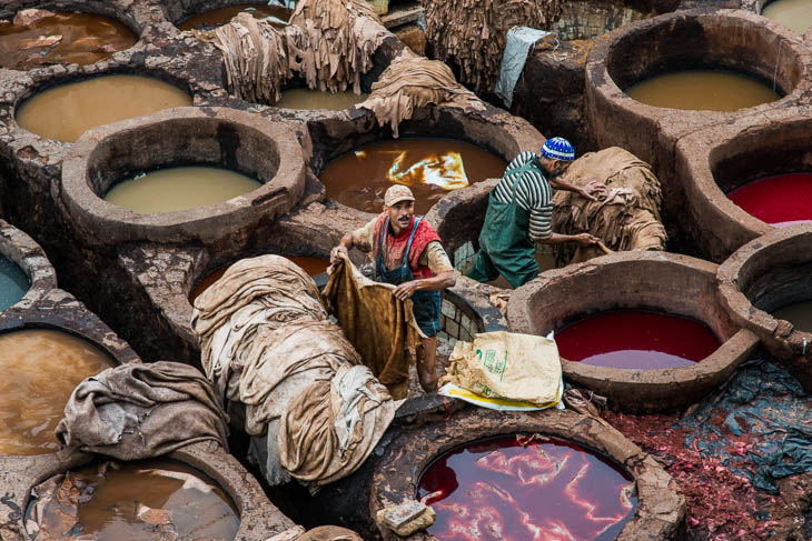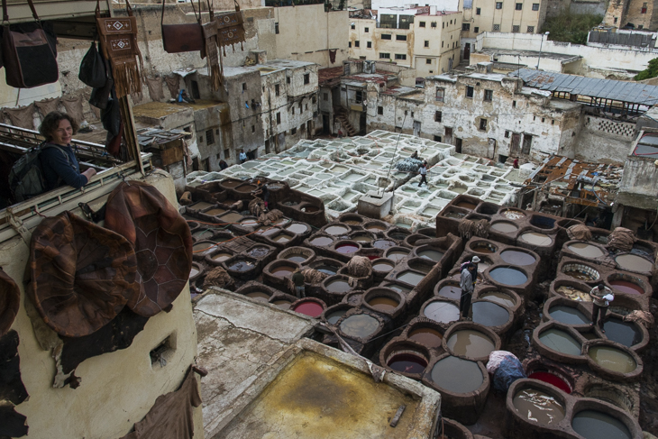 Wir besichtigen zuerst die römischen Ruinen von Volubilis bis wir kurz darauf die alte Königsstadt Fes erreichen. Das Flair dieser Altstadt erleben wir sowohl in der Nacht als auch tagsüber, sie gehört zu Recht zum UNESCO-Weltkulturerbe. Die verwinkelten Gassen, am meisten aber das mittelalterlich anmutende Gerberzentum mit seinen bunten Farben und strengen Gerüchen laden zum Bestaunen und Fotografieren ein. 34 Jahre nach meinem ersten Besuch bekomme ich es jetzt endlich zu Gesicht, da wir damals wegen der extremen Aufdringlichkeit von Schleppern und Verkäufern darauf verzichtet hatten. Durch verschiedenen Aufklärungskampagnen hat sich das zum Glück inzwischen deutlich verändert und das Reisen ist viel angenehmer geworden. Auch darf man Marokko nach dem Oman im Moment als das sicherste Reiseland in der Arabischen Welt bezeichnen.