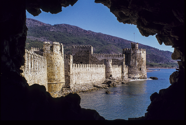 Wie schon bei Yasar, bleiben wir auch hier bis zum Frühstück am anderen Morgen und besichtigen anschließend mit Bekir und Afir die Burg von Anamur. Das heißt, besichtigen ist nicht ganz der richtige Ausdruck, wenn man damit ein gesetztes Umherlaufen, möglichst mit einem Reiseführer in der Hand, meint. Wir klettern nämlich auf den alten Mauern herum wie ausgelassene Kinder. Die Burg ist völlig einsam. Niemand verkauft Eintrittskarten, kein Wärter scheucht uns von den Mauern herunter, und keine Busladungen von Touristen werden durchgeschleust. In der Türkei können auch Leute, die keine Ruinenfans sind, auf den Geschmack kommen! Von ihrer geographischen Lage her ist die Türkei ein Durchgangsland, in dem immer wieder andere Völker und Stämme geherrscht haben. Dadurch ist die Vielzahl der unterschiedlichen Kulturen zu erklären, die sich in der wechselvollen Geschichte dieses Landes abgelöst haben.