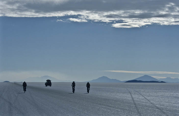 Als nächstes fahren wir mit unserem Fahrer und den vier Rädern auf dem Dach 800 km in den Süden des Altiplano zu den Salzseen von Uyuni. Sie sind die größten der Welt und wir können in fast 4000 m Höhe insgesamt über 100 km auf den ausgetrockneten Salzoberfläche mit unseren Mountainbikes fahren. Dann führen uns die Pisten weiter nach Chile und über Pässe bis 4700 m.