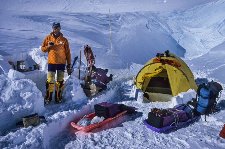 Am Abend sind wir alle zurück im Lager 2 - zusätzlich sind noch Peter und Karen mit ihren amerika­nischen Führern angekommen, nachdem sie einen Tag später vom Basislager gestartet sind. Dave ist ein klassischer amerikanischer Guide, der die ganze kurze Sommersaison hier am Mount Vinson arbei­tet, während Conrad Anker als Bigwall-Spezialist und einer der besten Allroundalpinisten überall in der ganzen Welt als Profikletterer und teilweise ebenfalls als Führer unterwegs ist.